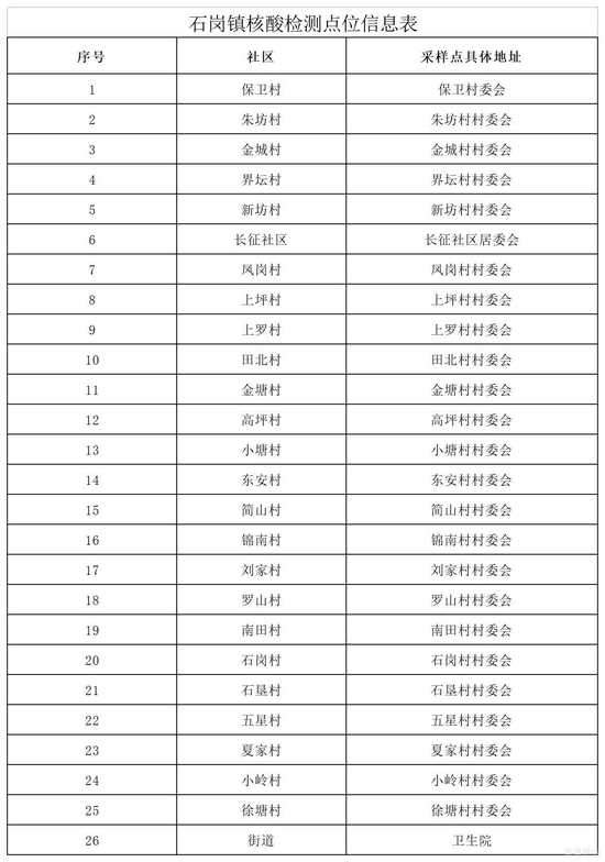2.石岗镇核酸检测点位信息表