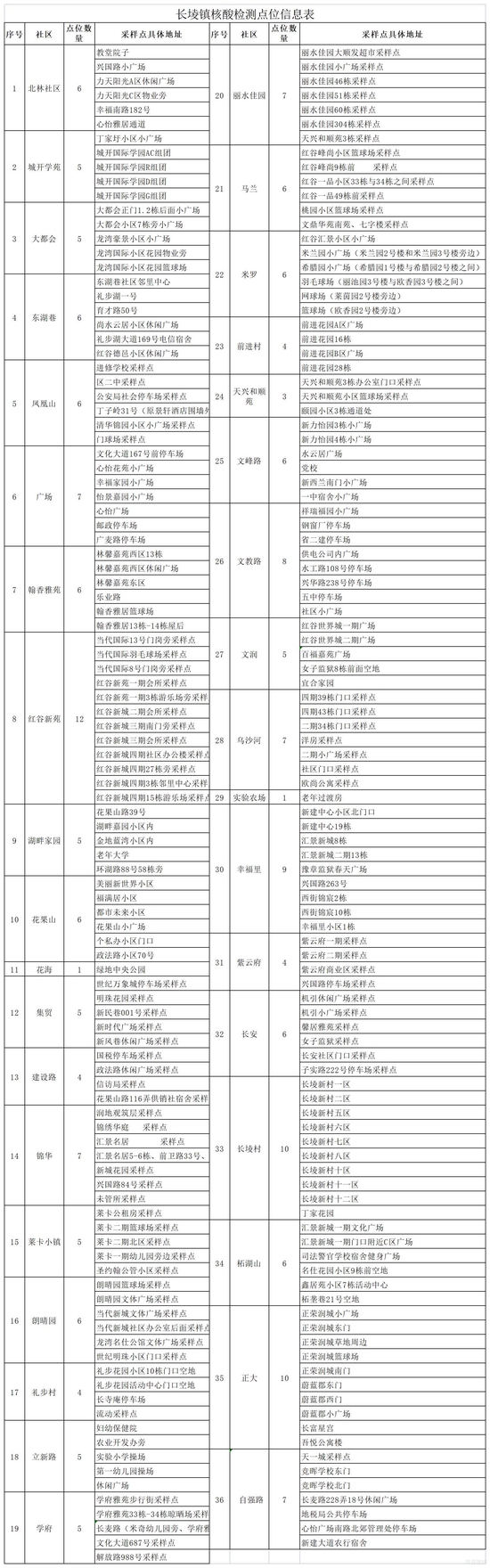 1.长堎镇核酸检测点位信息表