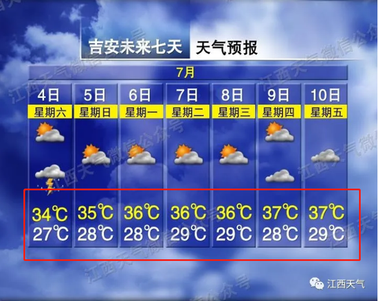 比如吉安,下周最高温37℃