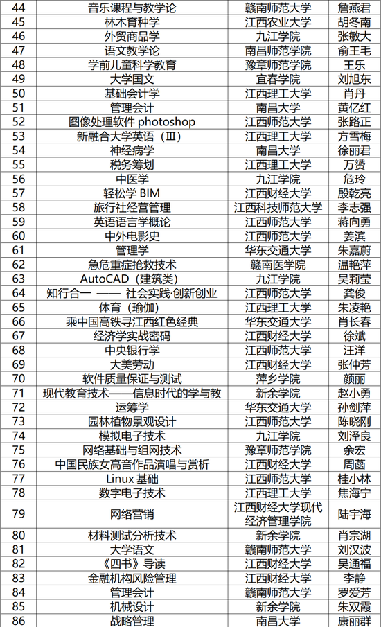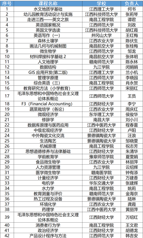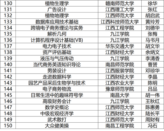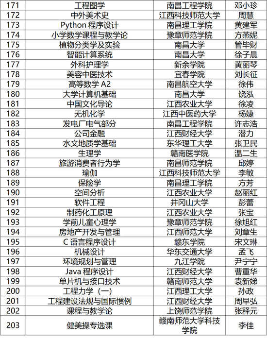 其中,省级线上一流课程150门,线下一流课程105门,线上线下混合式一流课程203门,社会实践一流课程20门,现予以公布(名单见下图)。