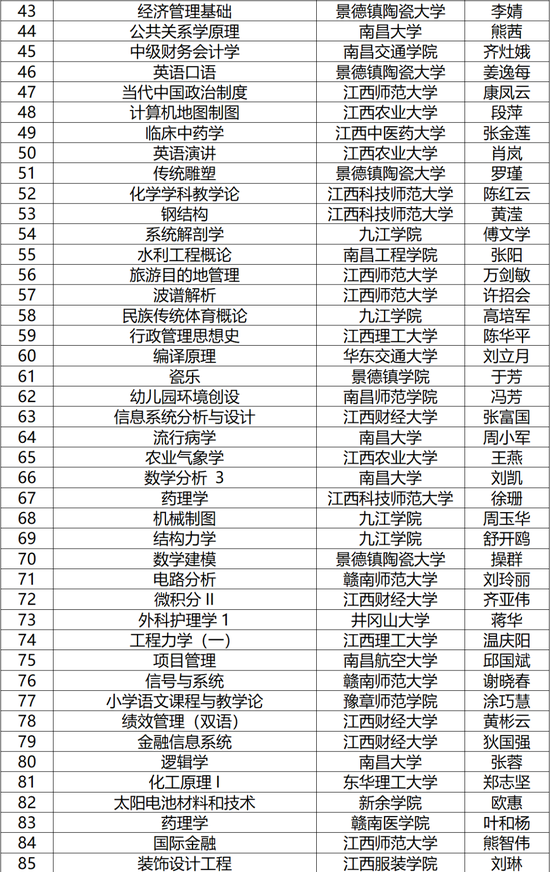 2021年江西省线下一流本科课程