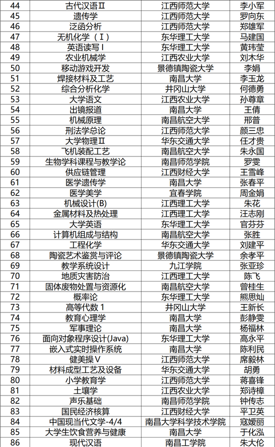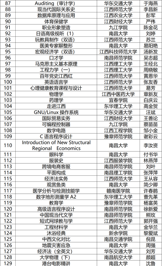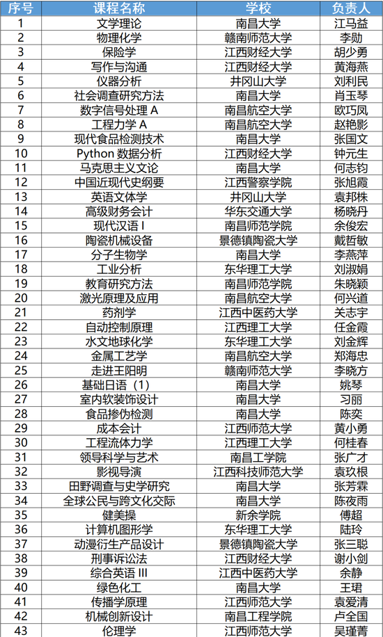 2021年江西省线上一流本科课程